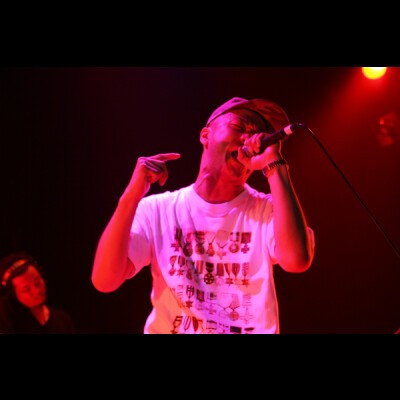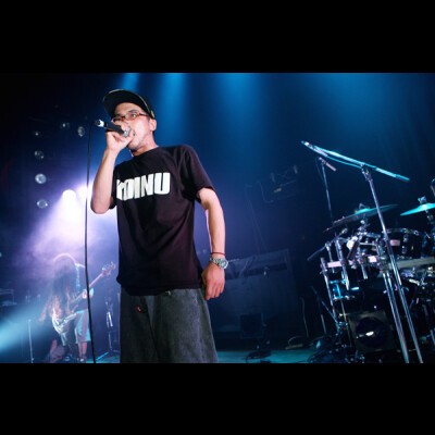 外は嵐。KOINUが拍車を掛けるように場内を掻き回し、ついに登場のTHA BLUE HERB。第一声を待つように張りつめた空気が彼ら独特の世界に連れていく。そして一つずつ積み上げるように巻き込む言葉と音の波に、観客は沸き、フロアの熱は全く冷めない。
