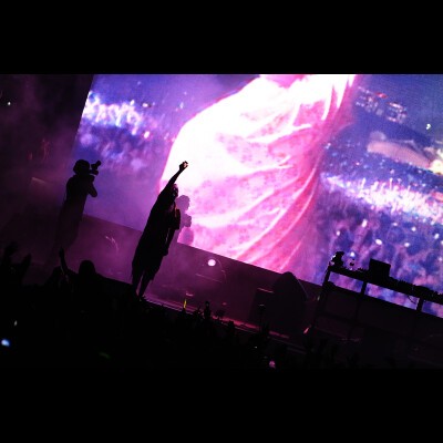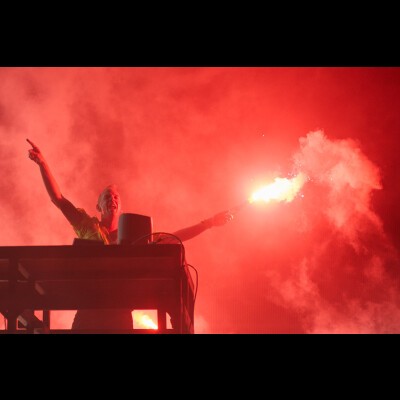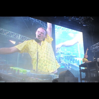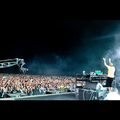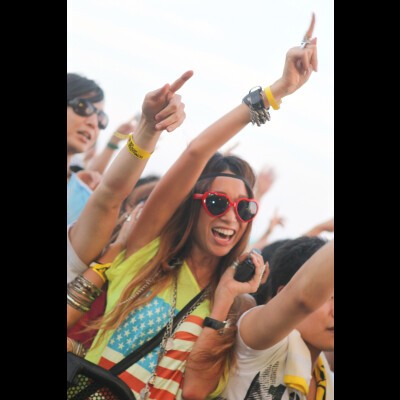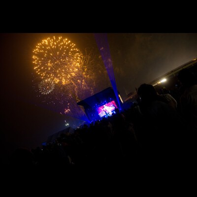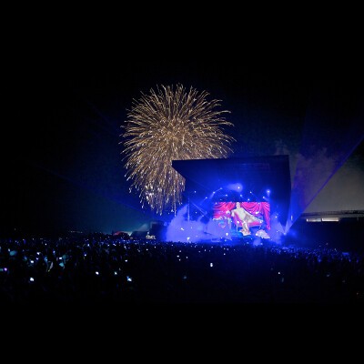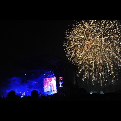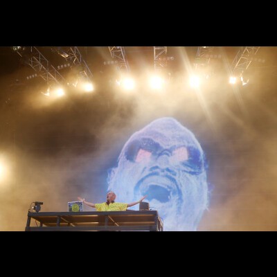 FATBOY SLIMは、この度の来日に合わせてリリースされたベストアルバム『BEST OF AT THE BEACH』に収録されているオリジナル楽曲を織り交ぜながら、彼らしい明るくハッピーなトラックの数々をたっぷり2時間プレイ。来日の度に凝ったステージ演出も素晴らしく、2009年の来日時よりグレードアップしたステージ照明やフルカラーレーザー、DJプレイと完全にシンクロしたVJ映像で観客を魅了。なかでもFATBOY SLIMのマッシュアップ曲「Bad Davis Saved My Life」のメロディに合わせて、会場のみんなが事前にケータイへダウンロードしておいた「EYEアニメーション」をステージに向って空高く一斉に掲げる「EYE PHONE」プロジェクトはお客さんを巻き込んで一体感を生み出すFATBOY SLIMらしい遊び心溢れた企画となりました。ラストには中世社交界を彷彿とさせるオーケストラが会場全体に響き渡り、色鮮やかな花火が夜空に舞い上がりました。