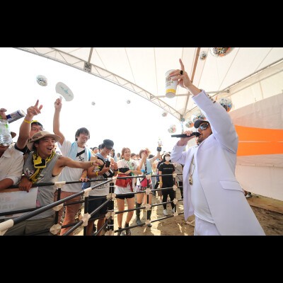 しかし、音楽ファンにとって今年の注目はFATBOY SLIMが本物の砂浜でプレイしたことでしょう。砂浜には見渡すかぎりの人、海のうえには豪華プレジャーボートが並び、 FATBOY SLIMがプレイ始める頃には綺麗な夕焼けが会場全体を赤く染めていました。まさに彼が英国ブライトンで開催する伝説のビーチパーティ「Big Beach Boutique」を日本で忠実に再現することができました。