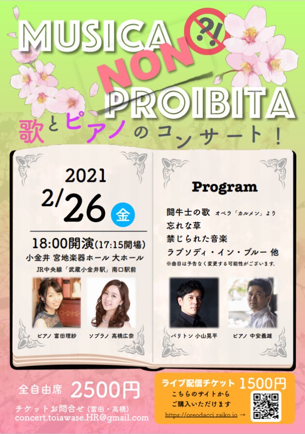 小金井宮地楽器ホールでの会場チケットは↓へお問い合わせください。
