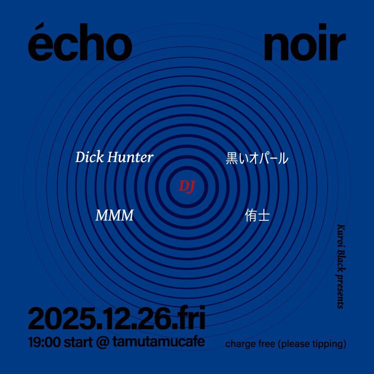0 Stars FRI, 26 Dec 2025Kuroi Black presents écho noir @ tamutamucafe / OSAKA, JAPAN TechnoHouseElectronic Dick Hunter/MMM/侑士/黒いオパール