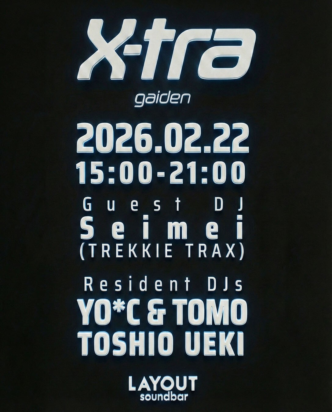 0 Stars SUN, 22 Feb 2026X-tra gaiden @ LAYOUT soundbar / TOKYO, JAPAN HouseTechnoTech House YO-C/Tomo Hirata/Seimei/TOSHIO UEKI