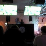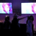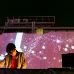 屋外に設置された500インチの超特大スクリーンによる映像演出。