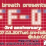 その他、廃墟跡地にて開催された野外フェス[natural smile]、神出鬼没の[addictive sound]…渋谷-amate-raxi-では屋内パーティー[BREASPHERE]を開催、青山OATHでの[bloom]を中心に東西南北、空から地下まで日本各所で行われる様々な祭にて「サブリミナル的ダンスミュージック」を信条に日々、音波を発信中。